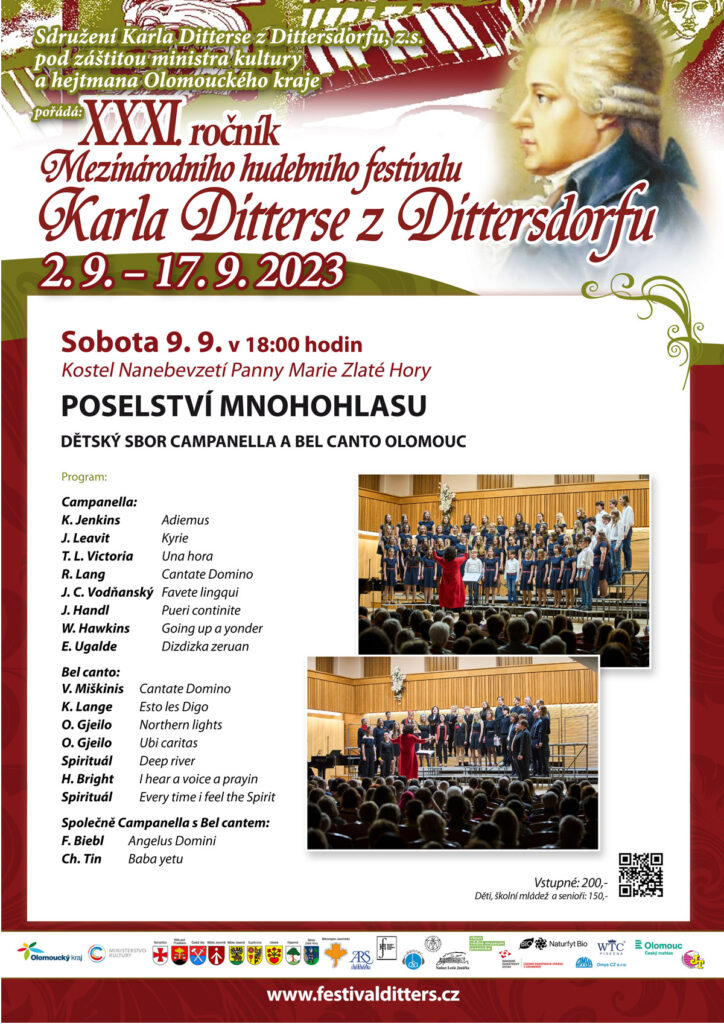 Sdružení Karla Ditterse z Dittersdorfu z.s. pod záštitou ministra kultury a hejtmana Olomouckého kraje zvou na XXXI. ročník Mezinárodního hudebního festivalu.